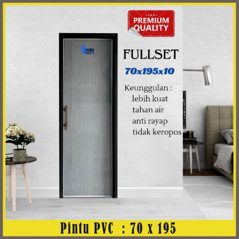 INDO DOORS Pintu Kamar Mandi PVC Tebal Full Panel Estetik ukuran 70x195 cm