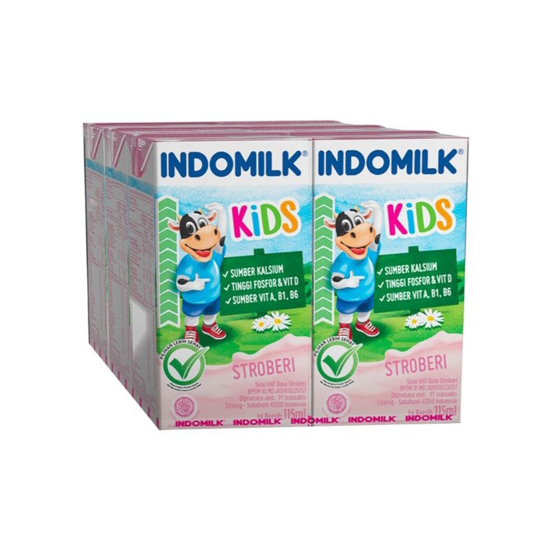 INDOMILK Kids Susu UHT banana strawberry Chocolate low fat vanilla paket isi 6 botol cokelat strawberry melon