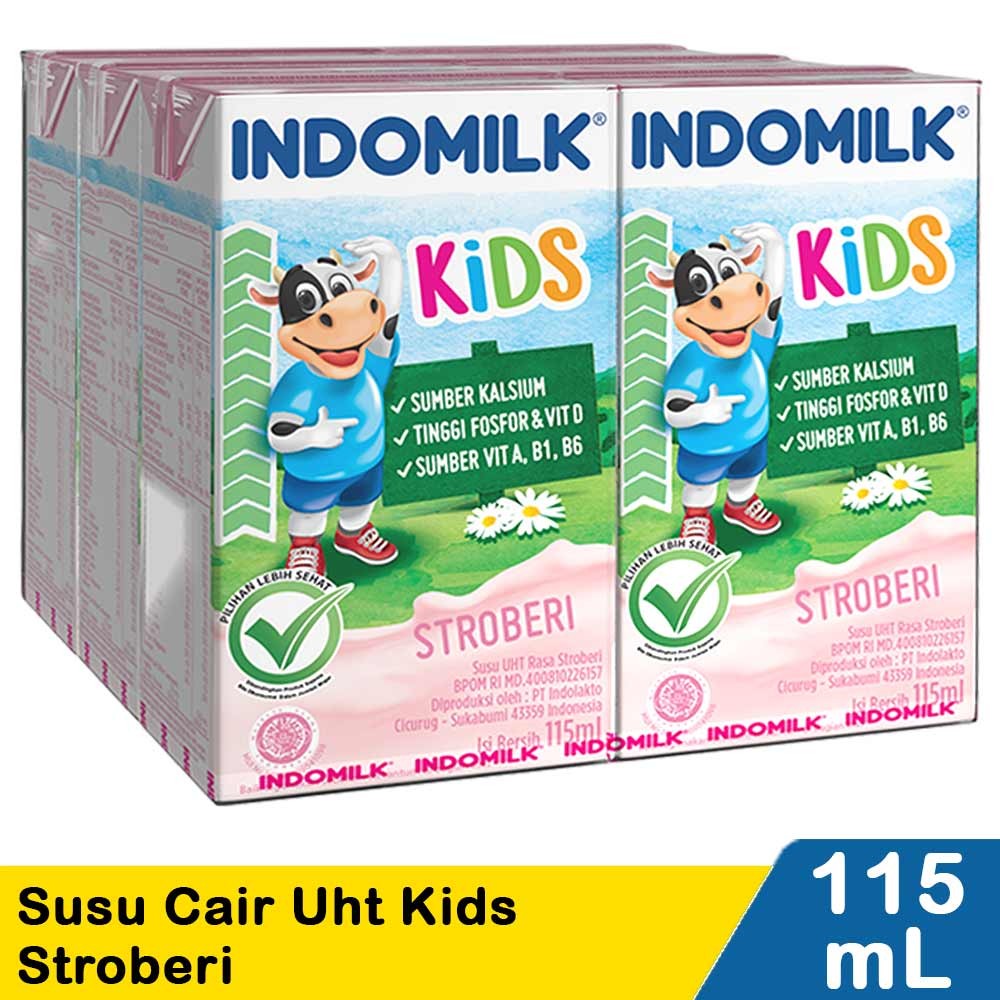 INDOMILK SUSU CAIR UHT KIDS STRAWBERRY 6x115mL
