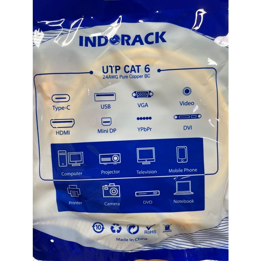 INDORACK C61B 1 Meter Kabel Lan CAT6 UTP Patch Cord Cable -BLUE