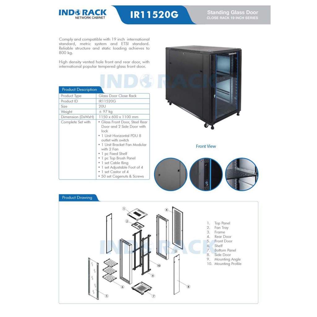 INDORACK CLOSE RACK 20U DEPTH 1150MM GLASS DOOR - IR11520G RACK SERVER 20U NOT ABBA NIRAX FORTUNA