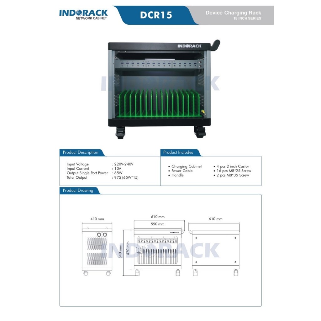 INDORACK DCR15 DEVICE CHARGER RACK 15 INCH With 15 Socket Port and Password Lock - Charging Rak - Charge Laptop - Charge Handphone