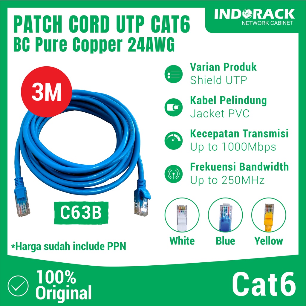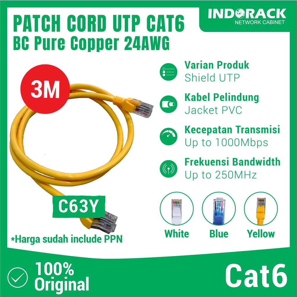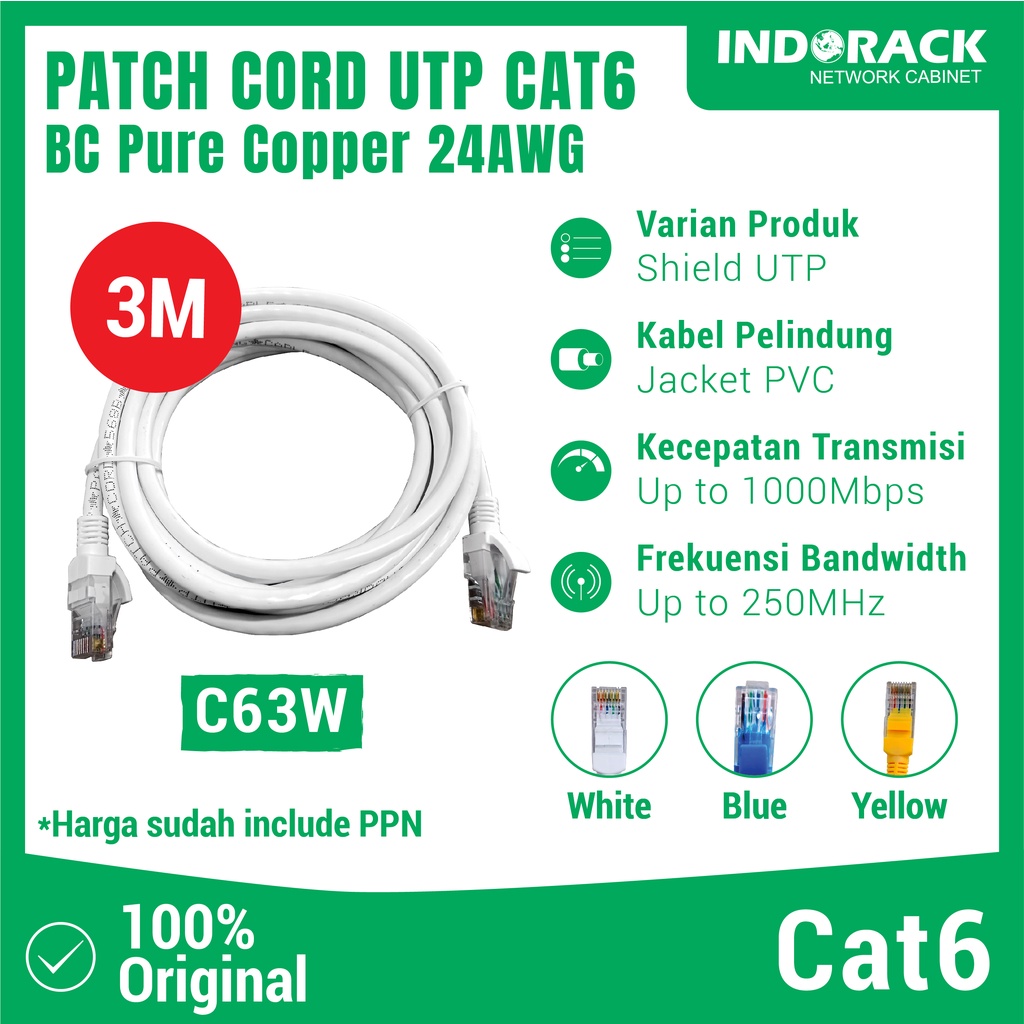 INDORACK PATCH CORD UTP CAT 6 - KABEL LAN CAT6 3 METER