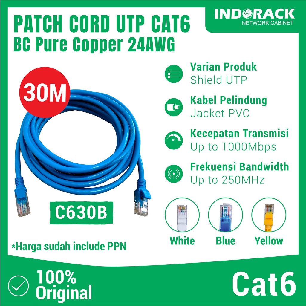 INDORACK PATCH CORD UTP CAT 6 - KABEL LAN CAT6 30 METER