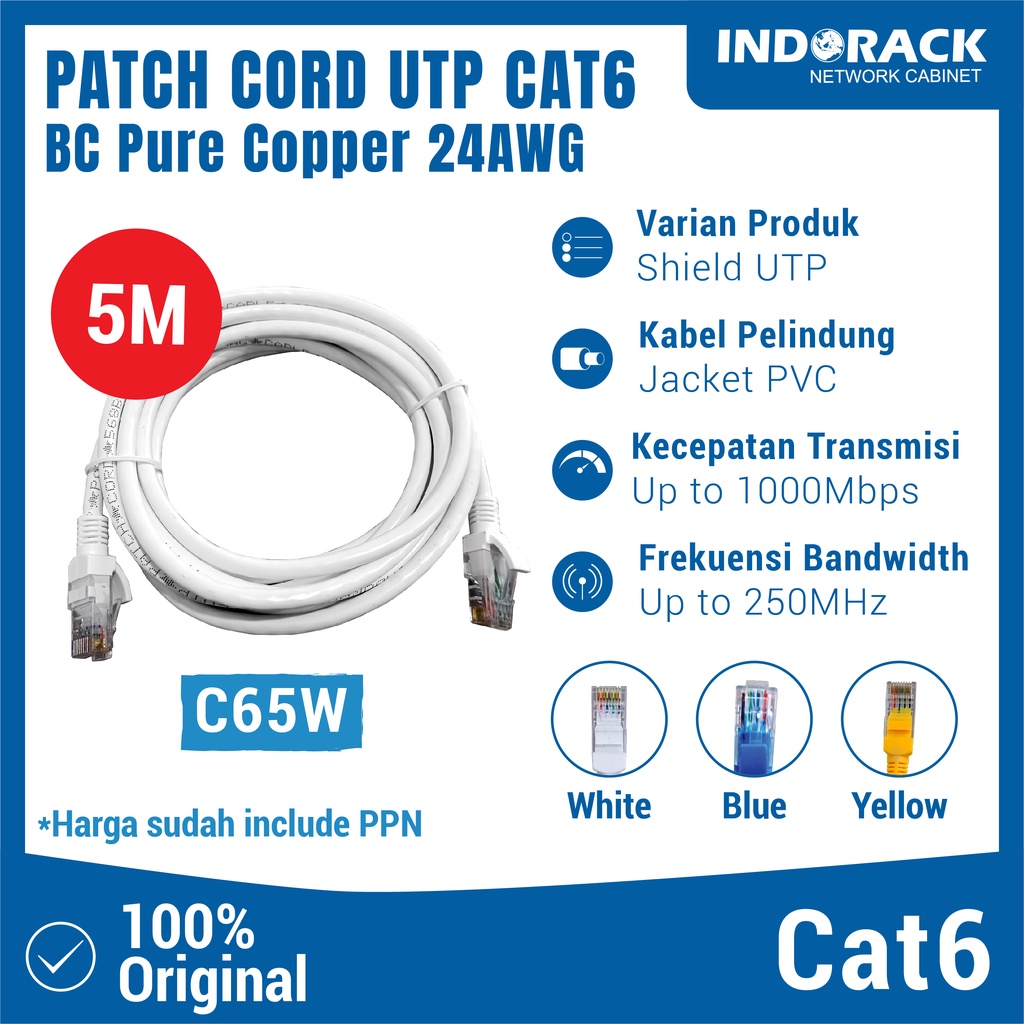INDORACK PATCH CORD UTP CAT 6 - KABEL LAN CAT6 5 METER