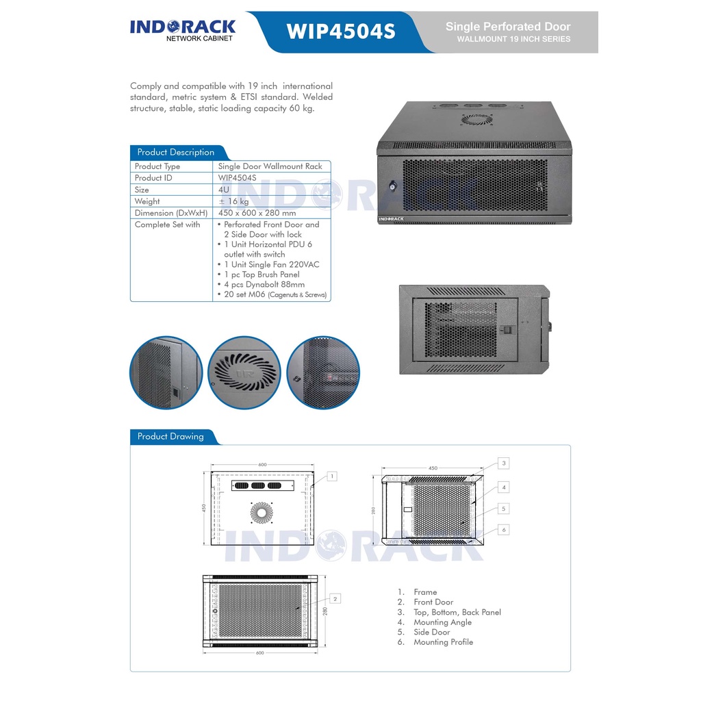 INDORACK Wallmount Rack 4U DEPTH 450 Perforated/Single Door Rak - WIP4504S