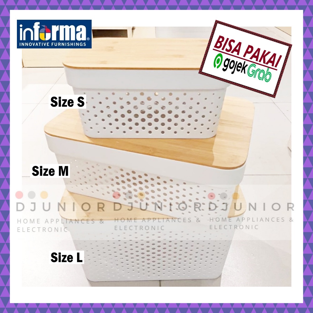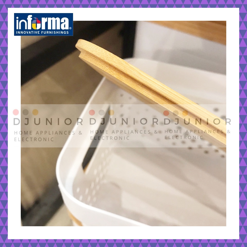 INFORMA - STORAGE BOX NATURAL WAFFLE WHITE / KOTAK PENYIMPANAN TUTUP KAYU