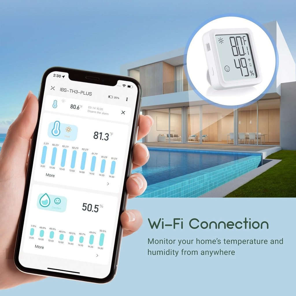 INKBIRD IBS-TH3-Plus Digital Display Thermometer Hygrometer Wifi Remote Temperature Humidity Sensor for Bedroom Office Cellar