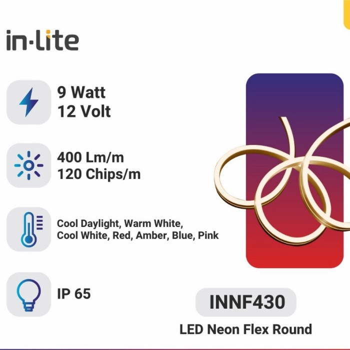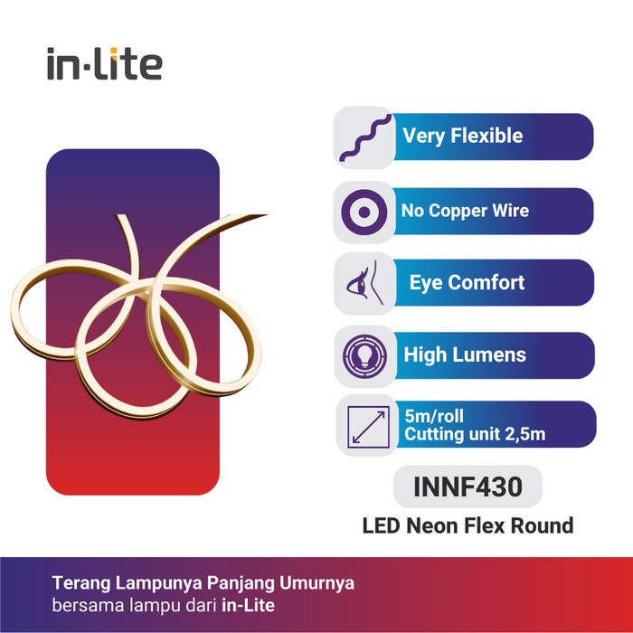 INLITE Lampu LED Selang Neon Flex Round INNF430 12V IP65 5Mtr 13MM - Warm White