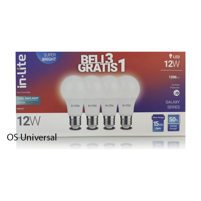 INLITE Lampu Led 11W Putih Paket Beli 3 Gratis 1 - Bohlam 11 Watt 11 W Murah Bergaransi