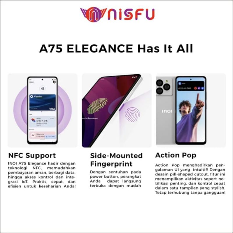 INOI A75 ELEGANCE 6GB / 256GB | 8GBB / 512GB | 50M AI CAMERA | 33W 5000Mah | BERGARANSI RESMI
