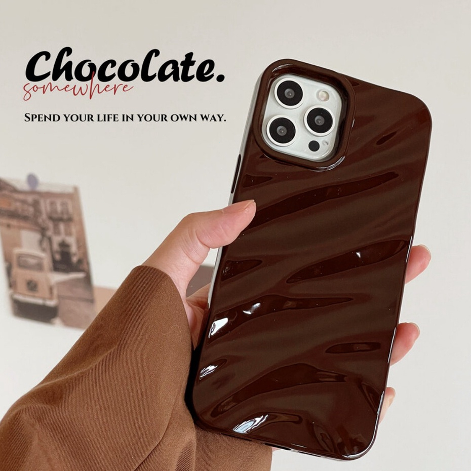 INS Khaki Caramel Pleats Case iphone Kompatibel Untuk Iphone 11 15 Casing hp 14 Pro Max Ip13 12 11 Pro Max IPhone 6Plus 7Plus 8Plus XS Max Anti Pecah Lembut TPU Penutup Belakang