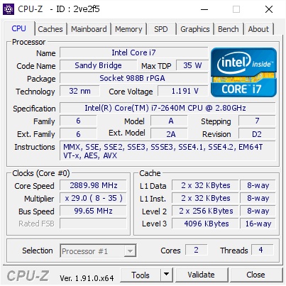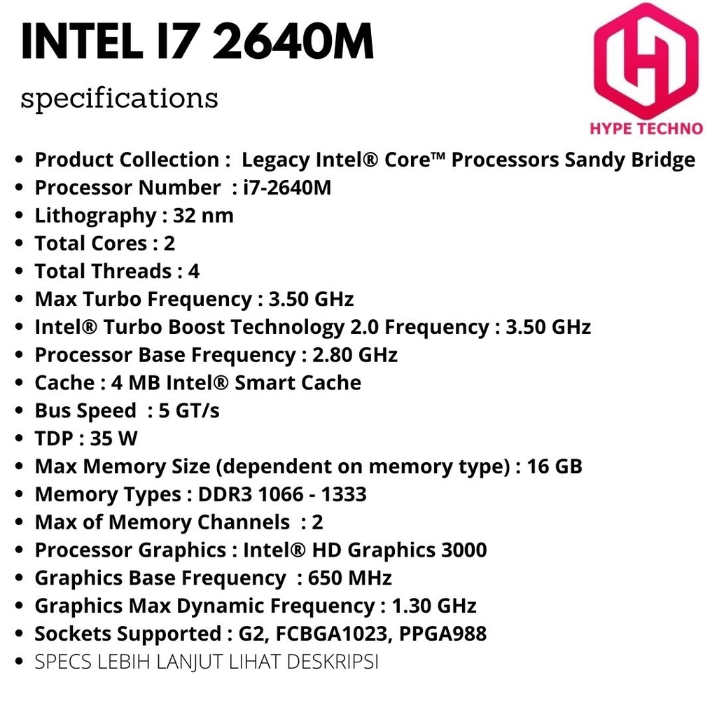 INTEL I7 2640M / SR03R - 2.80GHz UP TO 3.50GHz TDP 35W - INTEL HD GRAPHICS 3000 - SOCKET G2 / 988B rPGA / PPGA 988 PROCESSOR LAPTOP
