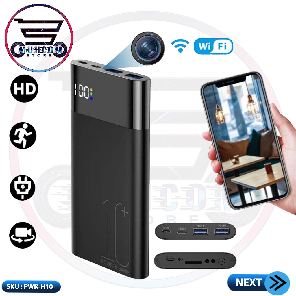 IP Camera Mini Wifi Powerbank H10+ 1000Mah Hidden Spycam Camcorder Kamera Full HD 1080P 4K Night Vision P2P APP Control Monitoring Jarak Jauh Power Bank Camera CCTV Mini Pengintai Pengawas Mata mata Rahasia Tersembunyi Kamera Multi Pungsi Murah Original