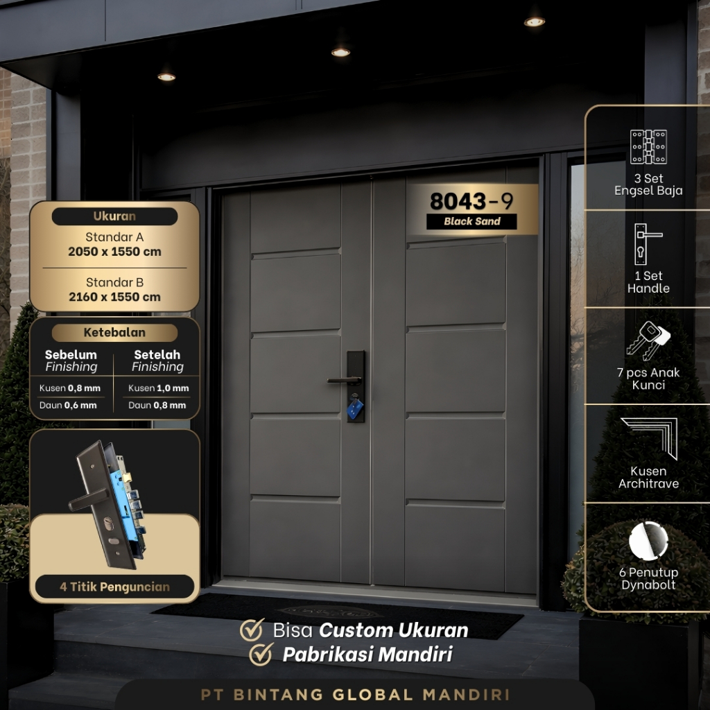 IPB - (LUXURY DOUBLE 8043) Pintu Plat Baja Double Kupu Tarung Utama Pintu Kamar / Pintu Baja Tahan Api / Pintu Murah / Pintu Utama / Pintu Baja Terlengkap Engsel + Handle + Kusen Kualitas Standart International
