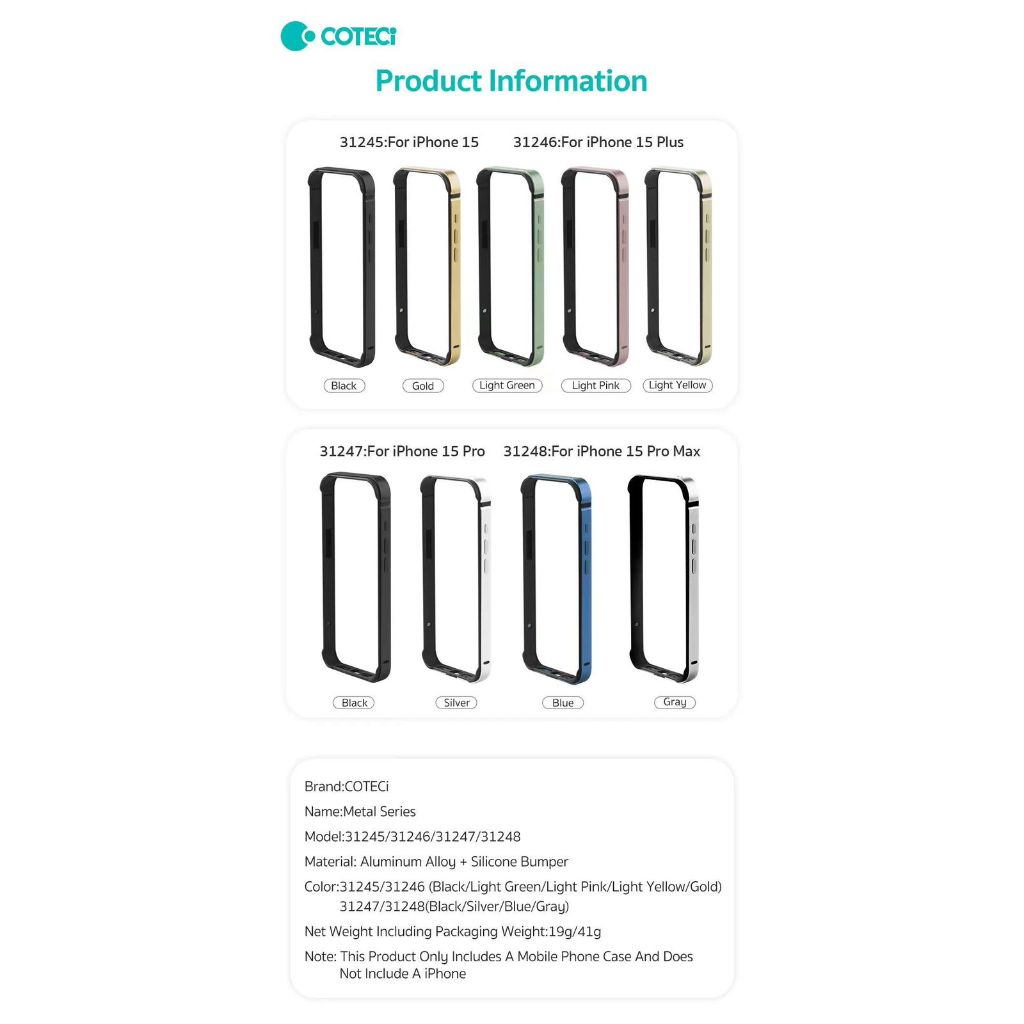 IPHONE 15 PRO MAX / 15 PRO / 15 PLUS / 15 ALUMINIUM METEL FRAME BAZEL BUMPER CASE