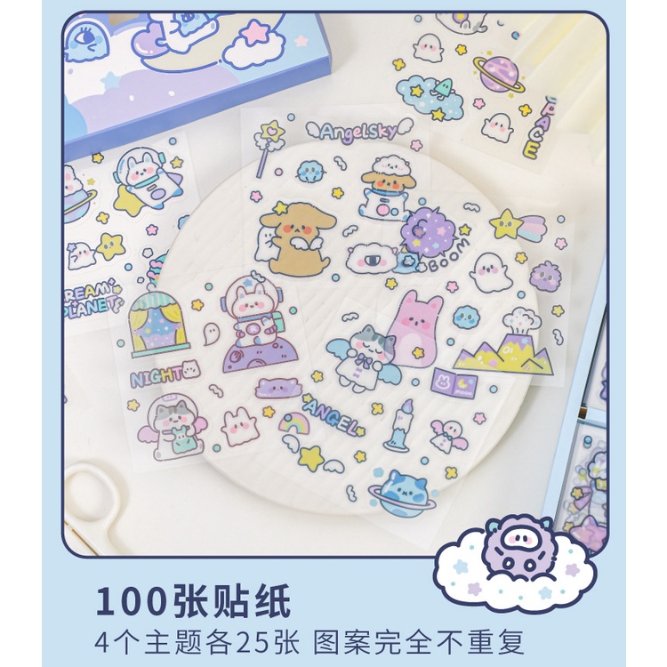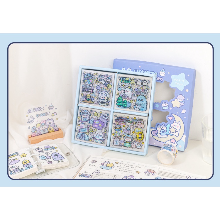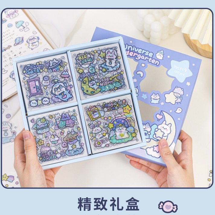 IPHSHOP Stiker 100 Lembar Universe Kindergarten Stiker Aesthetic Stiker Scrapbook Sticker Aesthetic Stiker HP Aesthetic Stiker Laptop Aesthetic Stiker Label Gift Box Souvenir Lucu