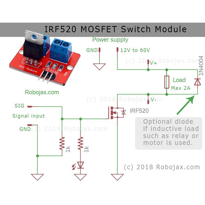 IRF520 MOSFET Driver Module PWM Motor DC Laser CNC 24V 5A IRF 520 Fet IRF-520