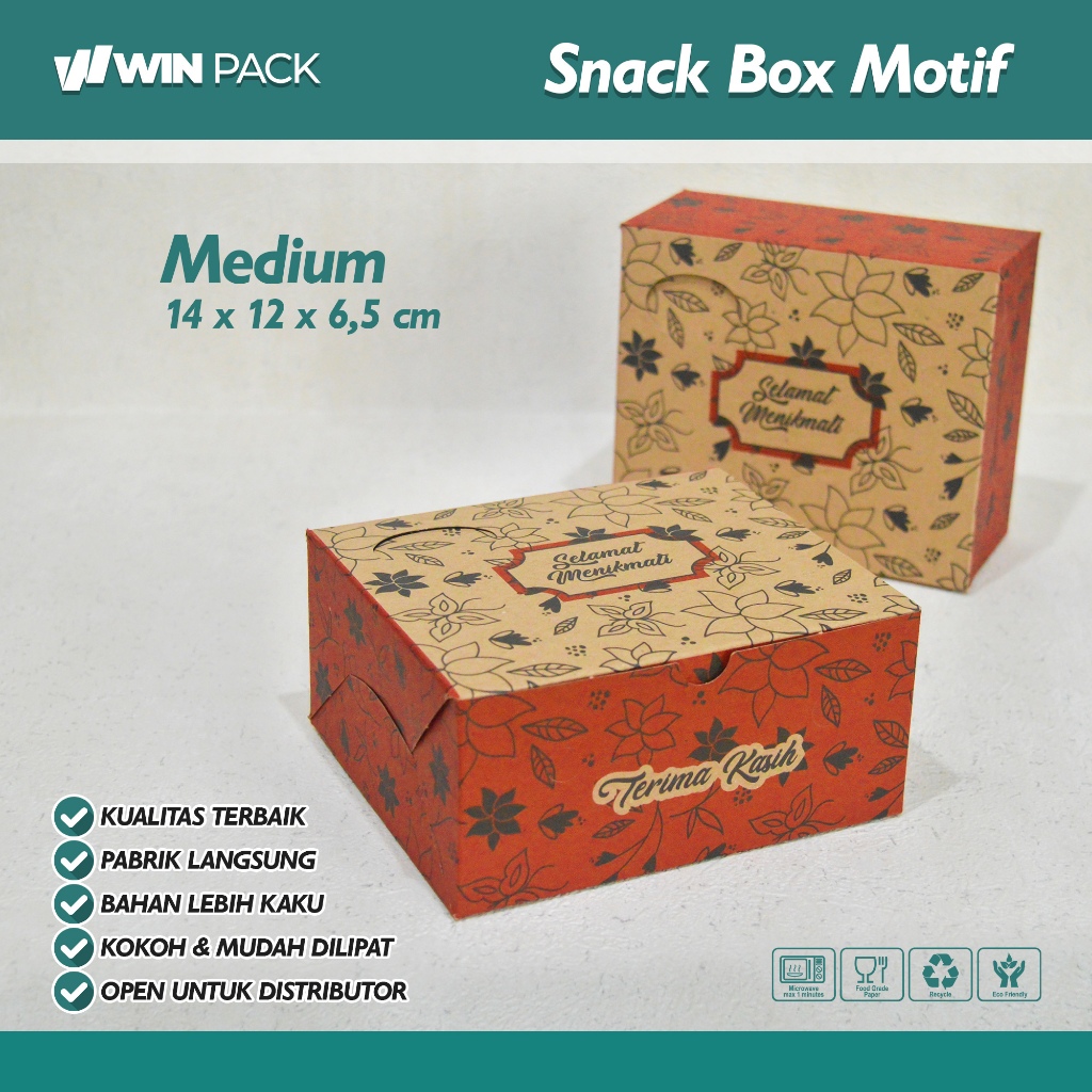 ISI 50 PCS SNACK BOX 14x12 | MOTIF | KRAFT 300 GSM TEBAL