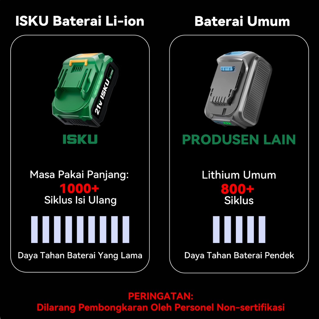 ISKU Bor Baterai 21V Kapasitas Tinggi Baterai Bor Cordless Lithium Baterai Bor Tanpa Kabel