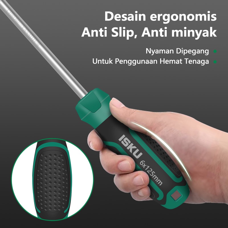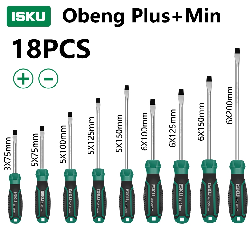 ISKU Obeng Plus Minus Magnet / obeng set Screwdriver Set /Pegangan Karet Anti Karat Screwdriver Sets Obeng Set Obeng Set Alat