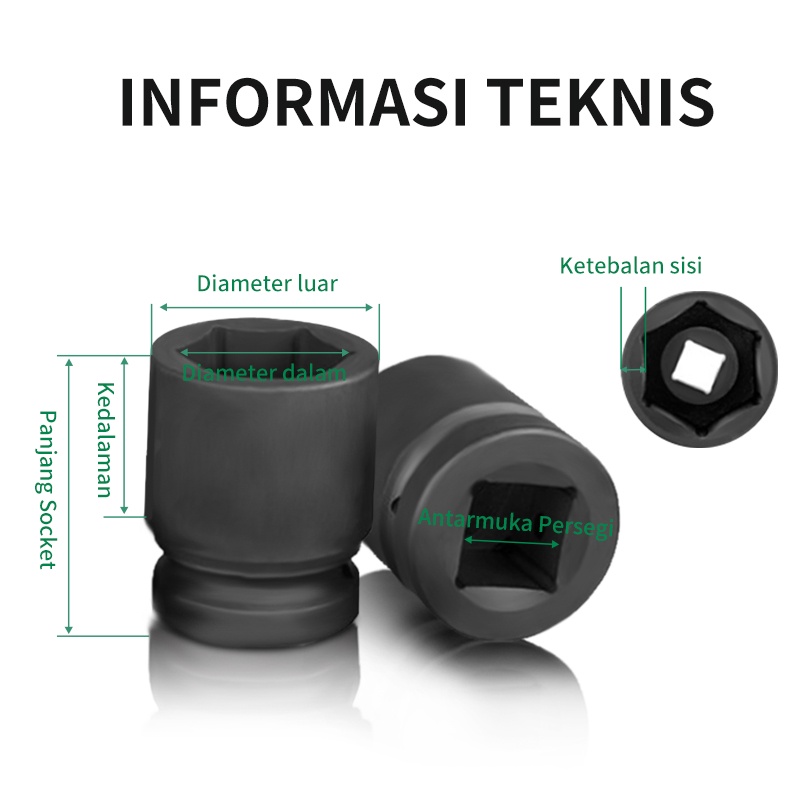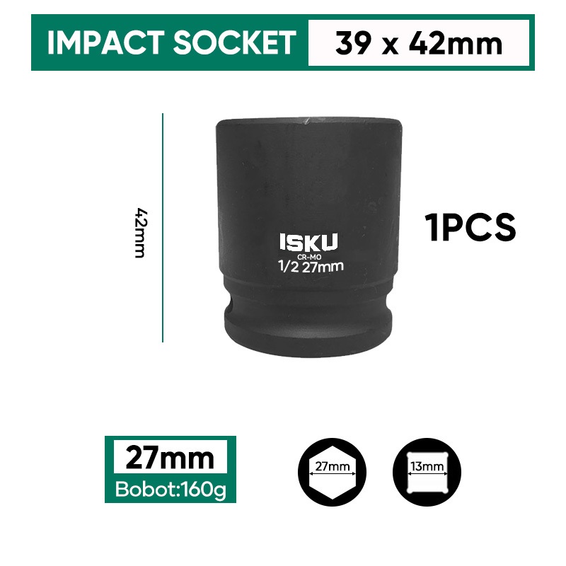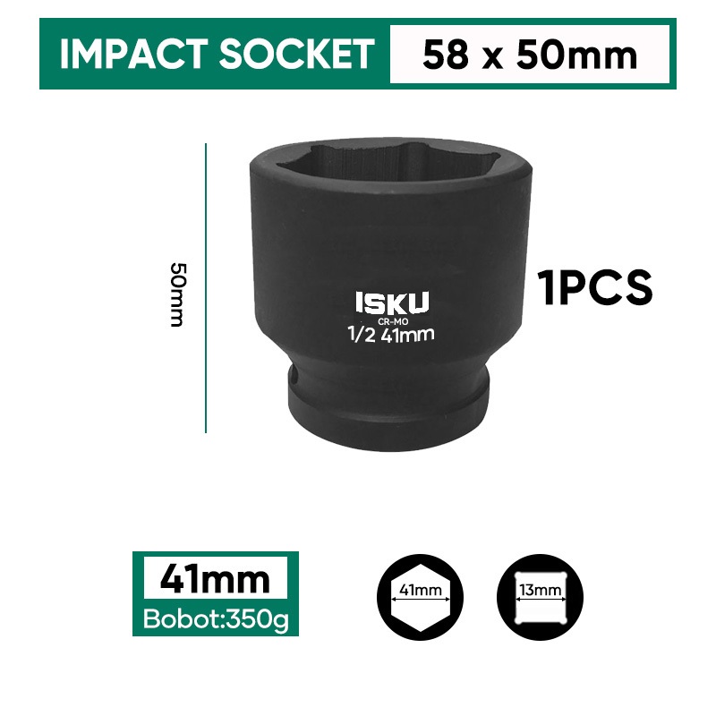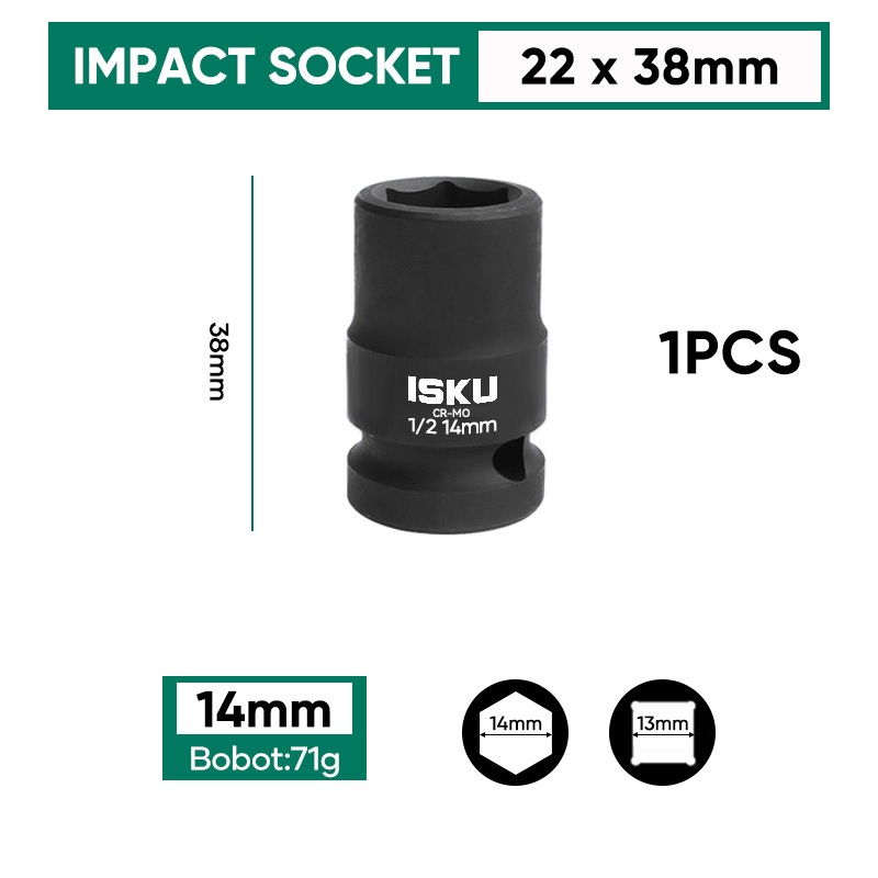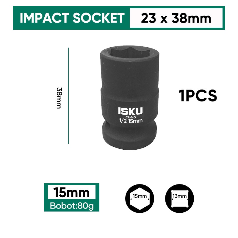 ISKU Pendek Mata Kunci Shock Impact/Mata Kunci Sok Impact/Impact Socket/Mata Sock Set 1/2" Drive Socket Kokoh Dan Kuat/Key Shock Professional Tools 8-24mm