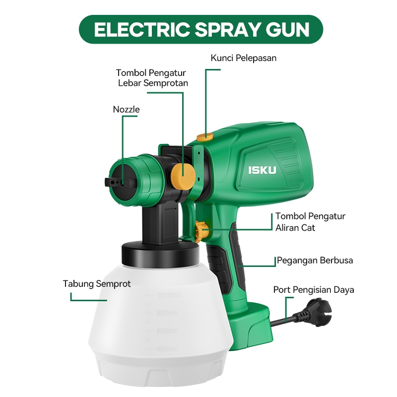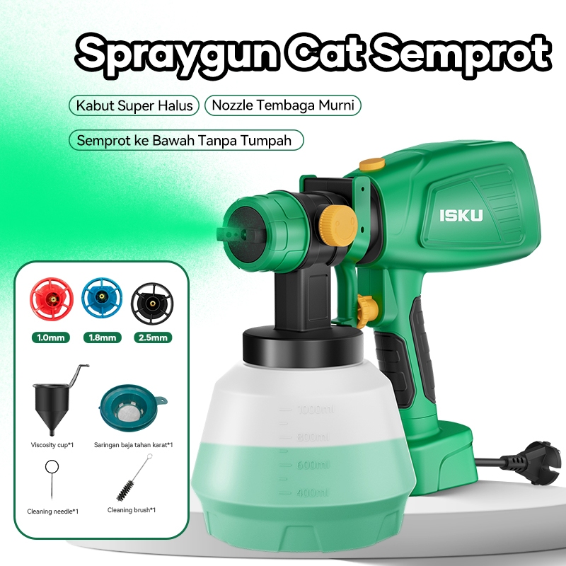 ISKU Spray gun elektrik 400W Alat Menyemprot Cat Mesin Semprot Cat Kapasitas 1000ml Paint Gun Paint Spray Paint Zoom
