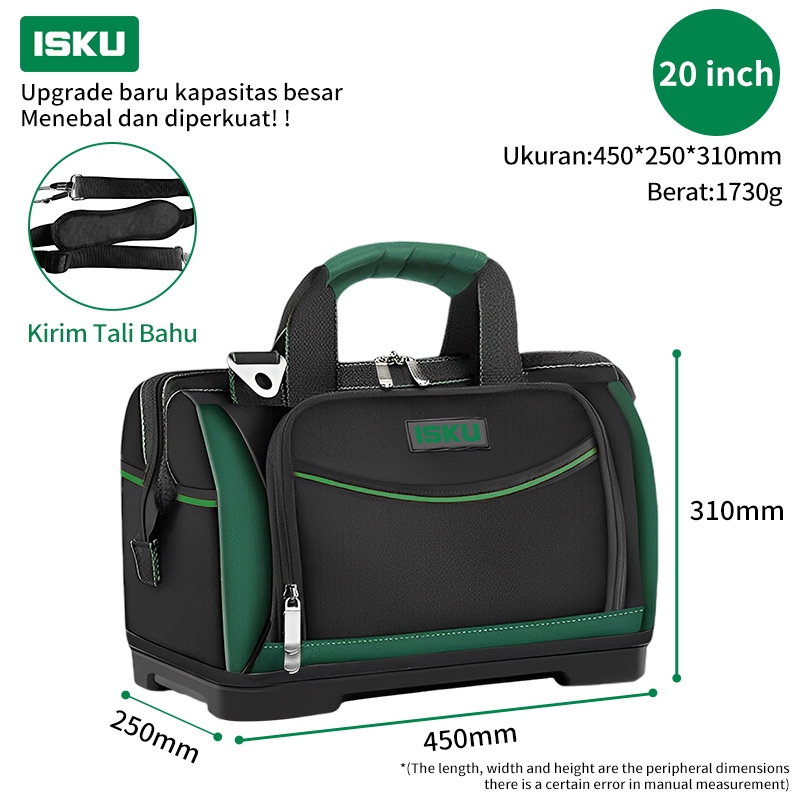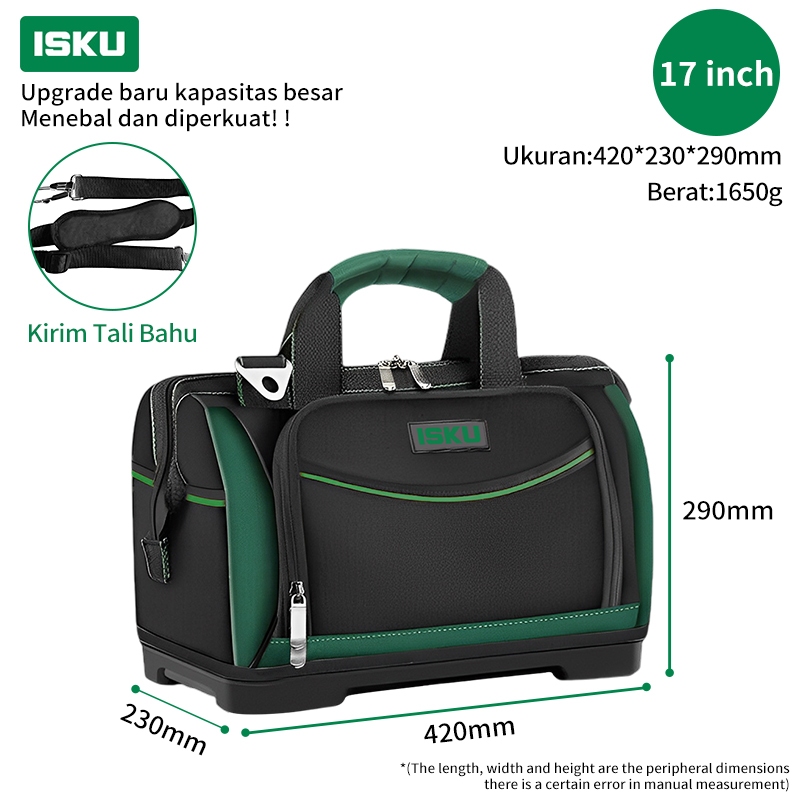 ISKU Tool Bag perkakas Tas Perkakas 15 /17 /20 inch Tas Penyimpanan Tas Kain Oxford Yang Tebal Dan Kuat Tas Alat Perkakas besar Toolkit Tas Penyimpanan Perkakas Perkakas Tas Kunci Motor Mobil Alat Tukang Toolbag