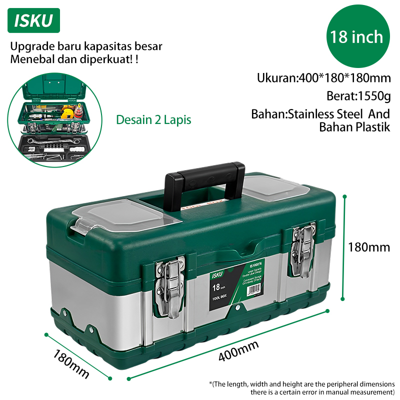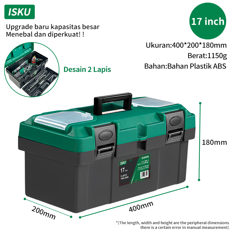 ISKU Tool Box Besar Plastik 14 15 17 18 19 20 Inch Bahan Pp Tools Box Kotak Peralatan Besi /Tool Box Stainless Kuat 2 Tingkat/Toolkit Box Kotak Alat perkakas