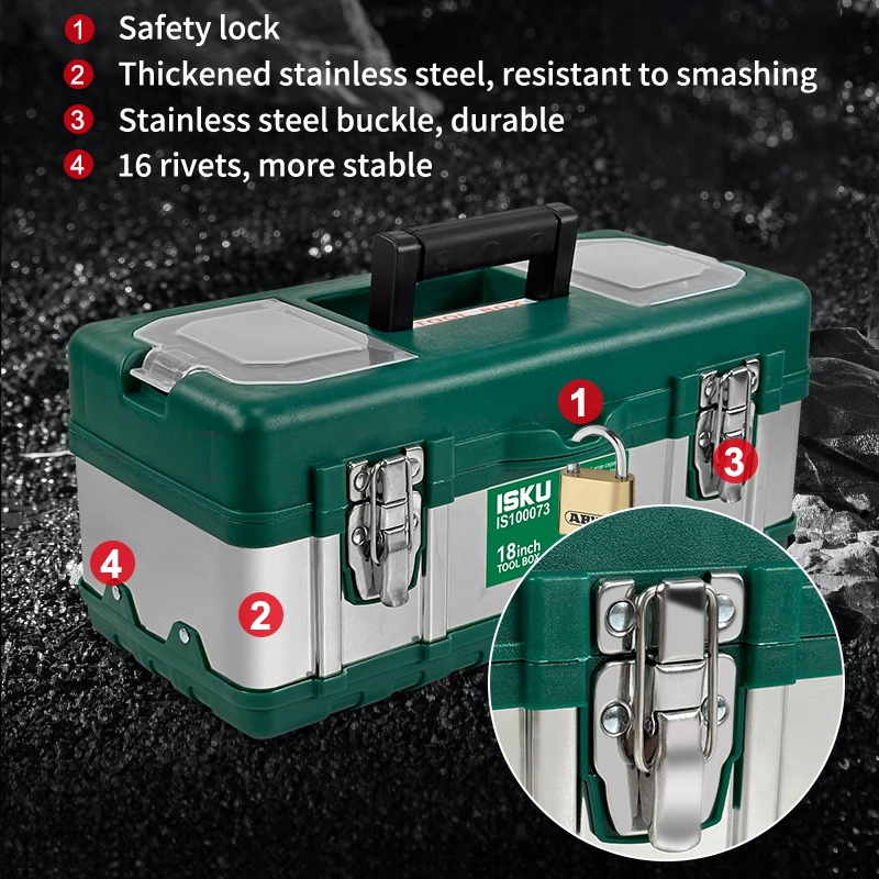 ISKU Tool Box Besar Stainless 18 Inch (40*18*18cm) Baja Kotak Perkakas Besi Baja Toolbox Stainless ABS 18 Inch