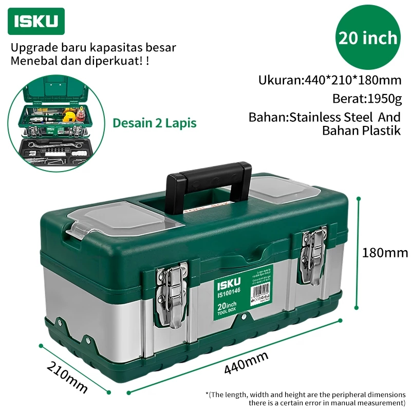 ISKU Tool box Besar 20 Inch Box Alat Perkakas Tool Box Bahan Stainless Steel Kotak Perkakas