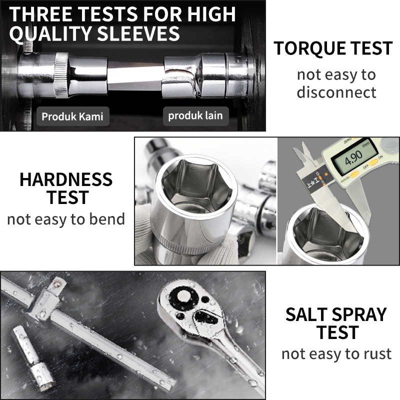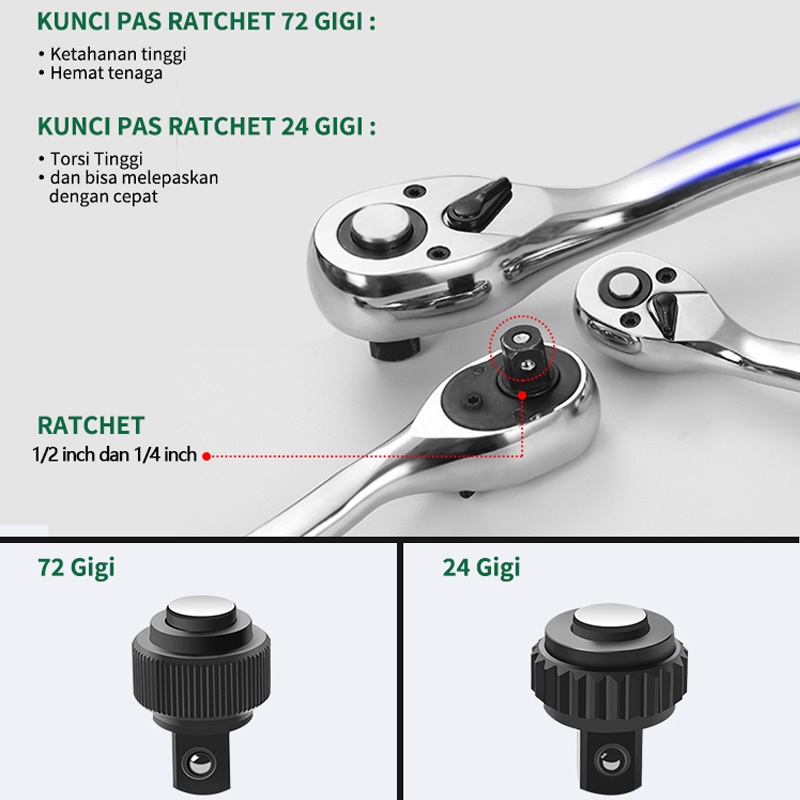ISKU Tool kit Set alat Kunci Sok set 37pcs/kunci pas Set 12pcs 8-19mm 1/2 kunci Mata Sok lengkap 19pcs Kombinasi 1/2 72gigi Gagang ratchet Alat Perbaikan Mobil Toolbox/Kunci Set 37/61/82pcs Set kunci perbaikan mobil