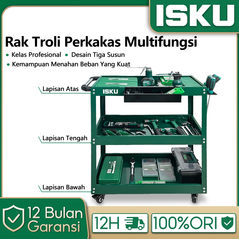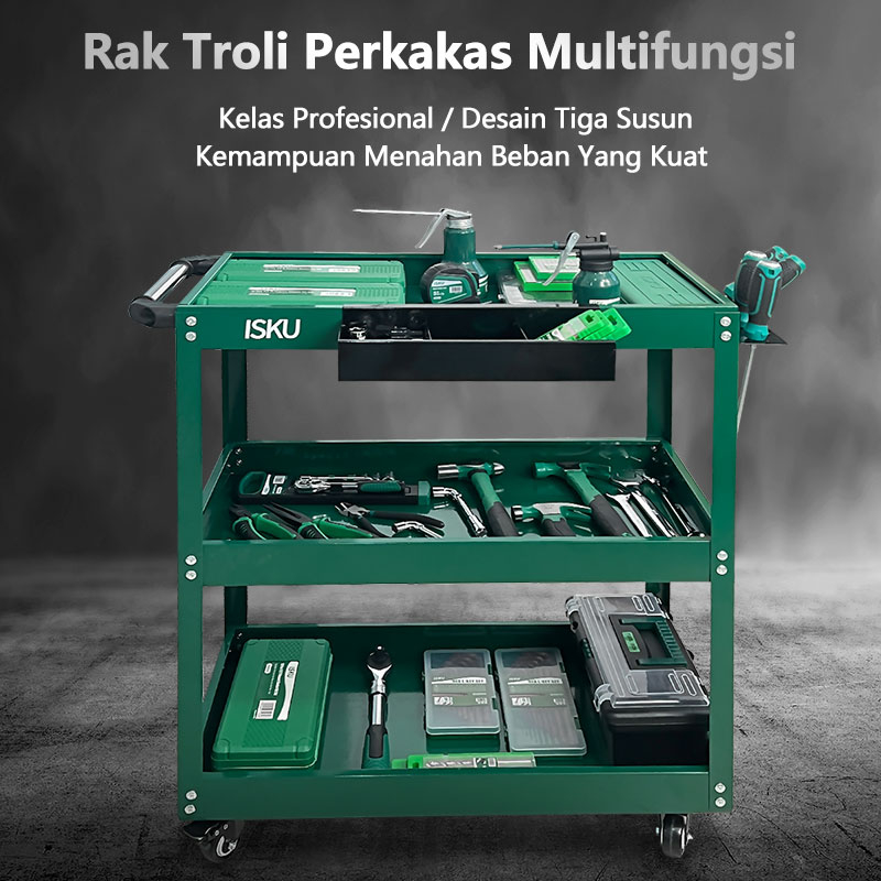 ISKU rak troli bengkel/Trolley 3 Susun/rak alat/keranjang alat susun/keranjang alat dengan penyimpanan alat/keranjang alat lemari troli bengkel/keranjang alat/rak kerja/alat