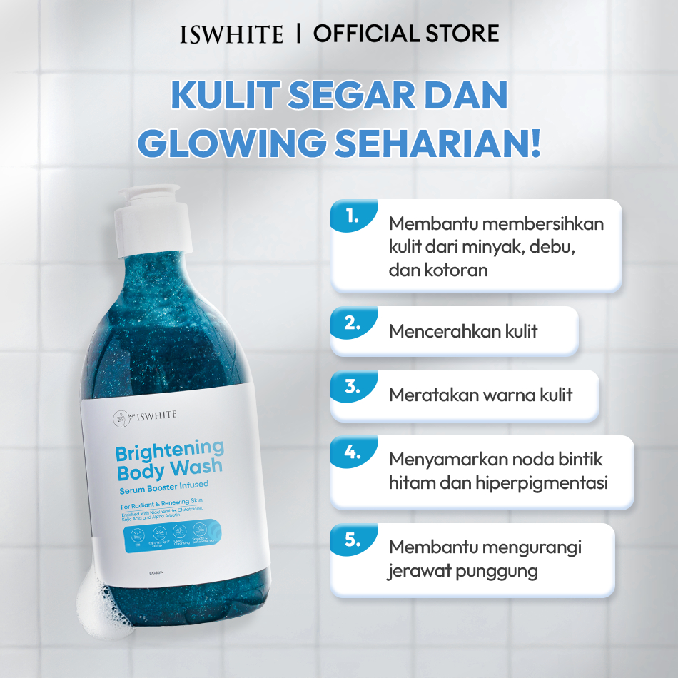 ISWHITE Body Wash Whitening 300ml - Sabun Mandi Mencerahkan, Penghilang Jerawat Punggung BPOM