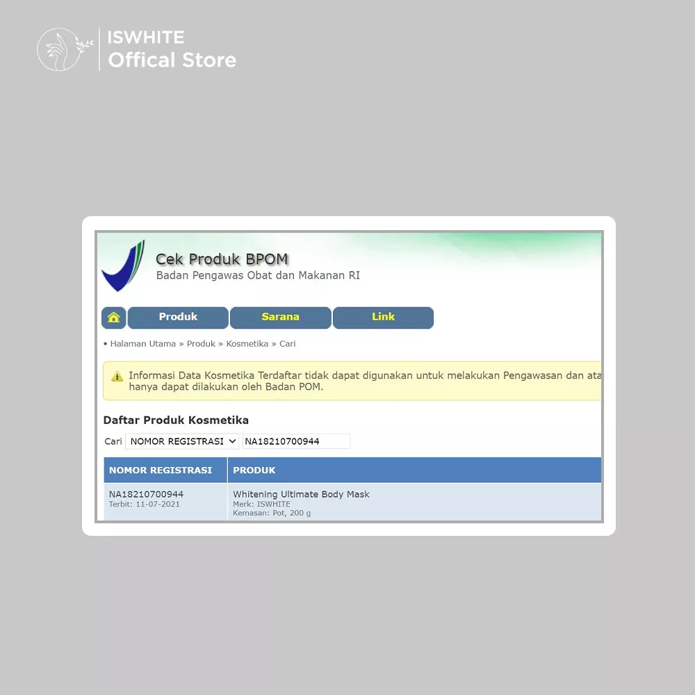 ISWHITE Whitening Ultimate Body Mask with Hydrolyzed Collagen 5X Mencerahkan Masker Badan 200gr