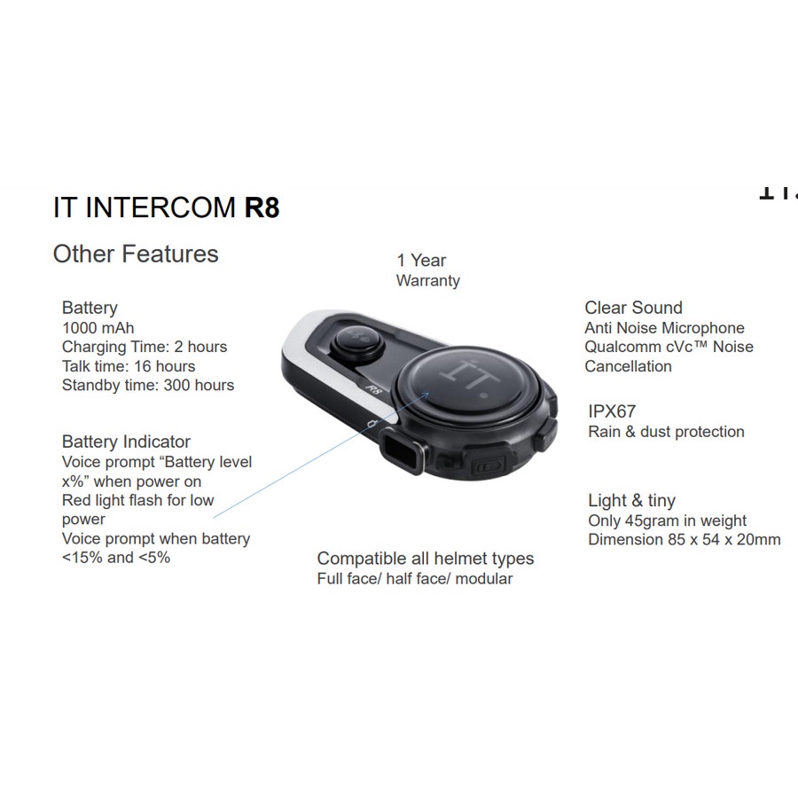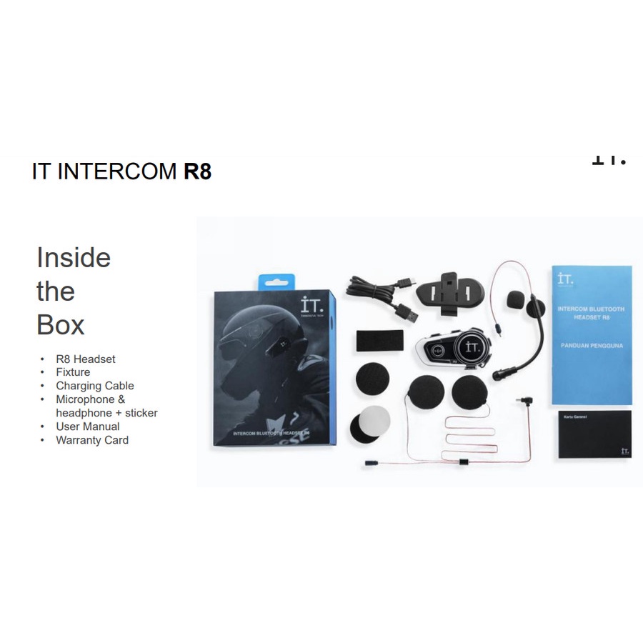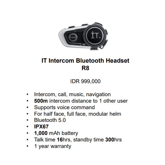 IT Intercom Helmet Bluetooth Headset R8 - Garansi TAM 1 Tahun