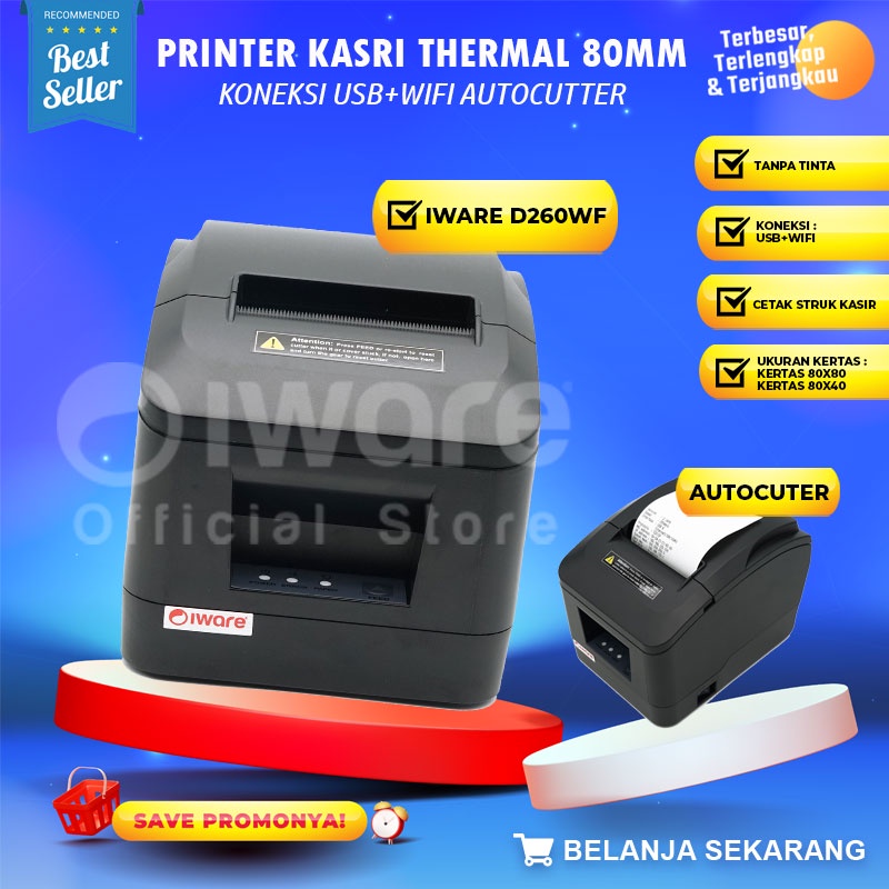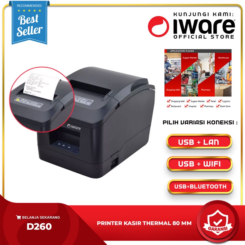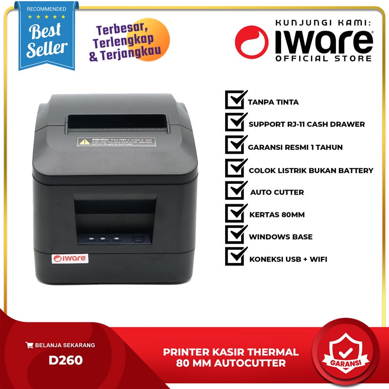 IWARE PRINTER STRUK KASIR THERMAL D200 / D260 80MM USB BLUETOOTH LAN AUTOCUTTER RJ11