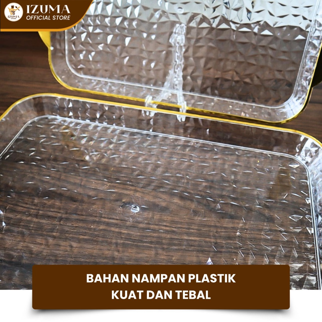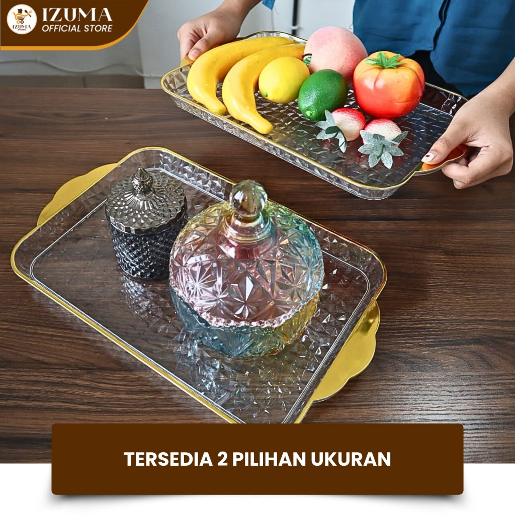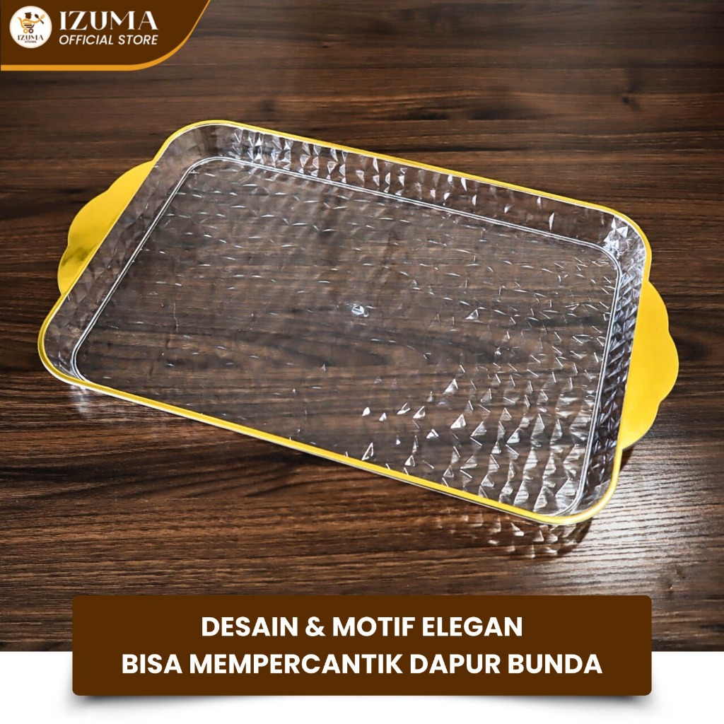 IZUMA Nampan Kotak Transparan Gold Nampan Emas Baki Emas Plastic Akrilik Grey Gold Amber Handle Persegi Nampan Estetik Murah