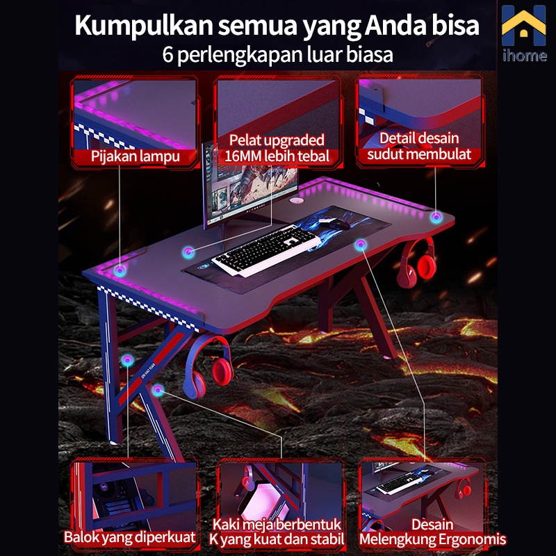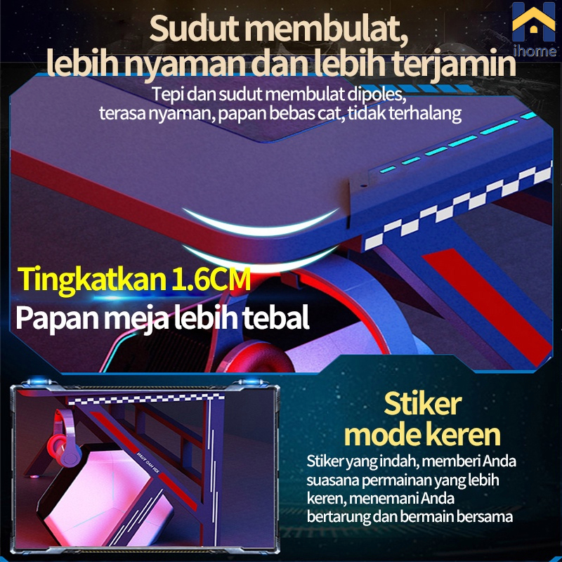 Ihome Meja Gaming 140cmMeja Komputer Gaming Desk Meja Belajar Meja Kerja meja Gaming meja PC meja Laptop Meja kantor Minimalis