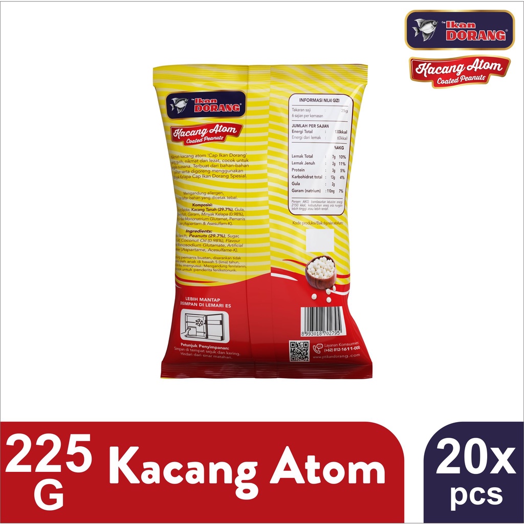 Ikan Dorang - Kacang Atom 225 gr (Original) - Multipack 20 pcs/ 1 KARTON
