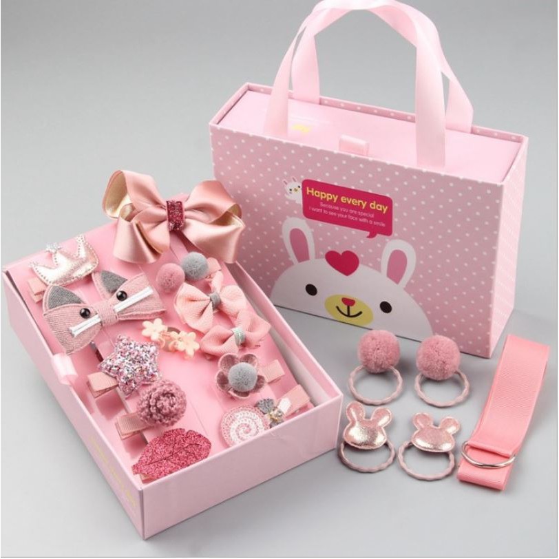 Ikat Rambut Anak Pita 18 pcs/Set Gift Box & Paper Bag - Kunciran - Jepit Rambut - Aksesoris Fashion