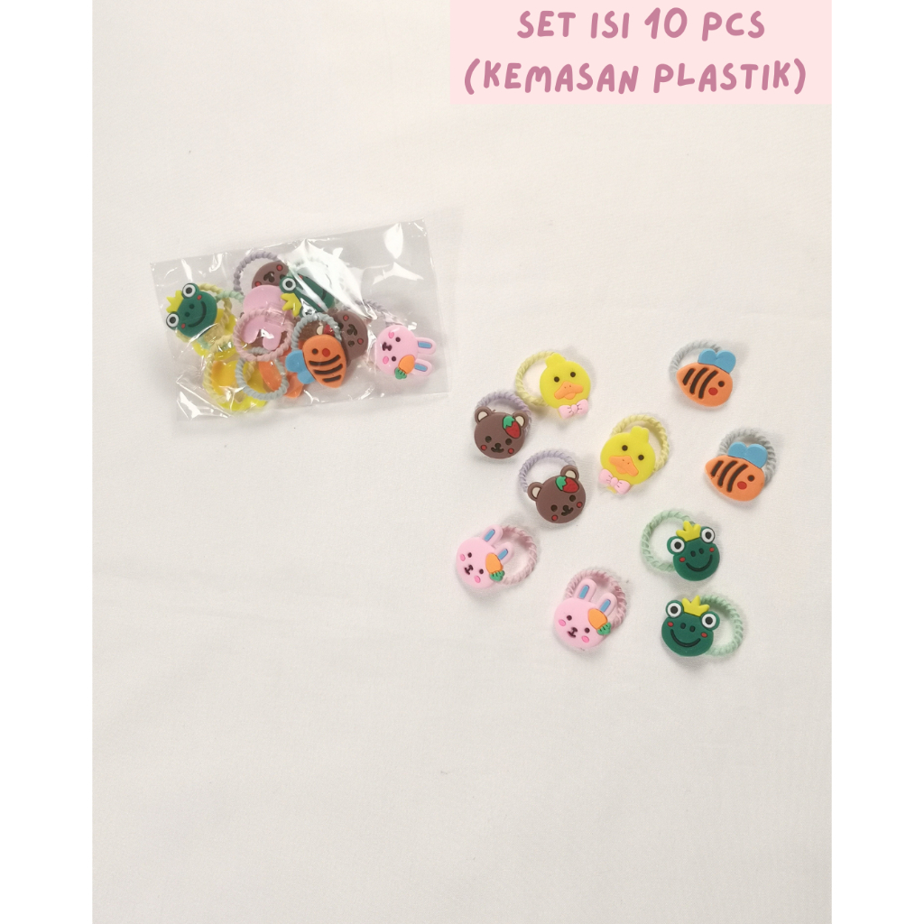 Ikat Rambut Kunciran Anak Kecil Set isi 10 Warna Warni Korea Lucu Perempuan Karakter Kartun Karet Elastis Aksesoris Rambut ASW Gallery KCR08