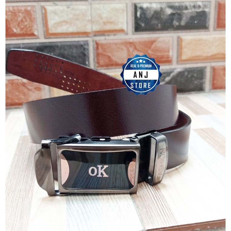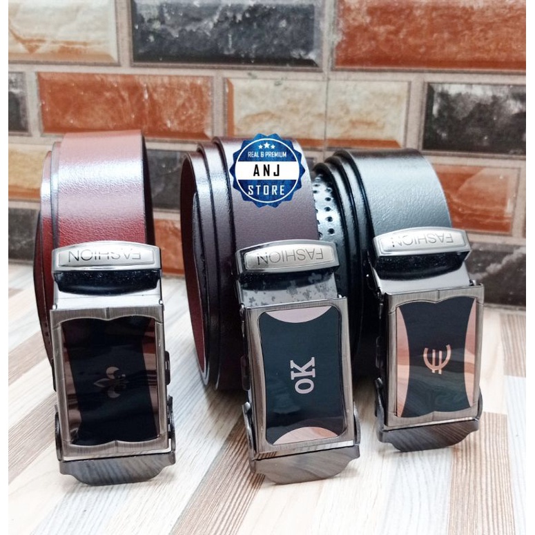 Ikat pinggang kulit pria gesper kepala jepit sabuk semi kulit premium gesper jepit pria