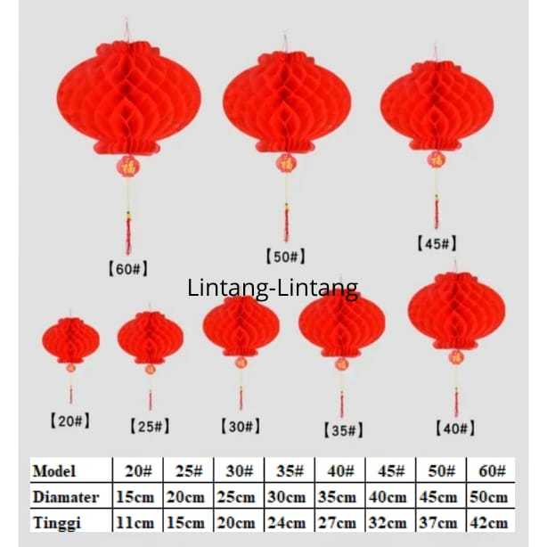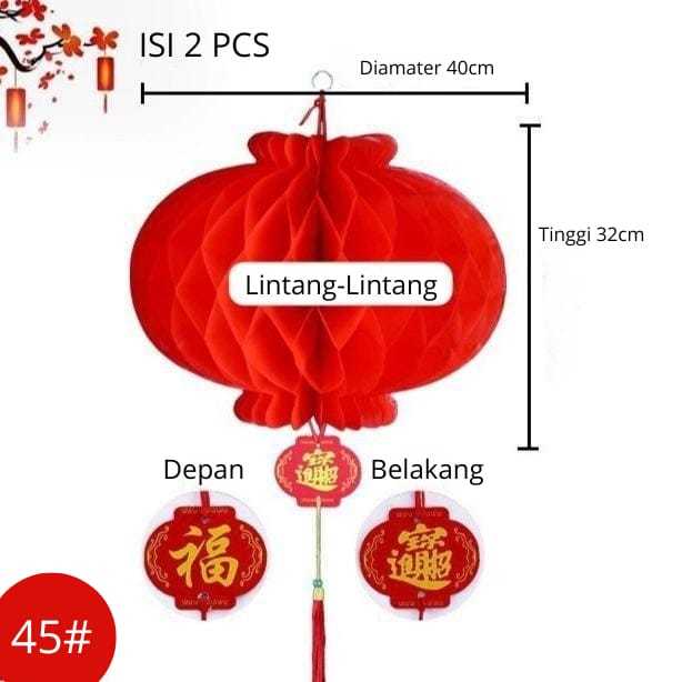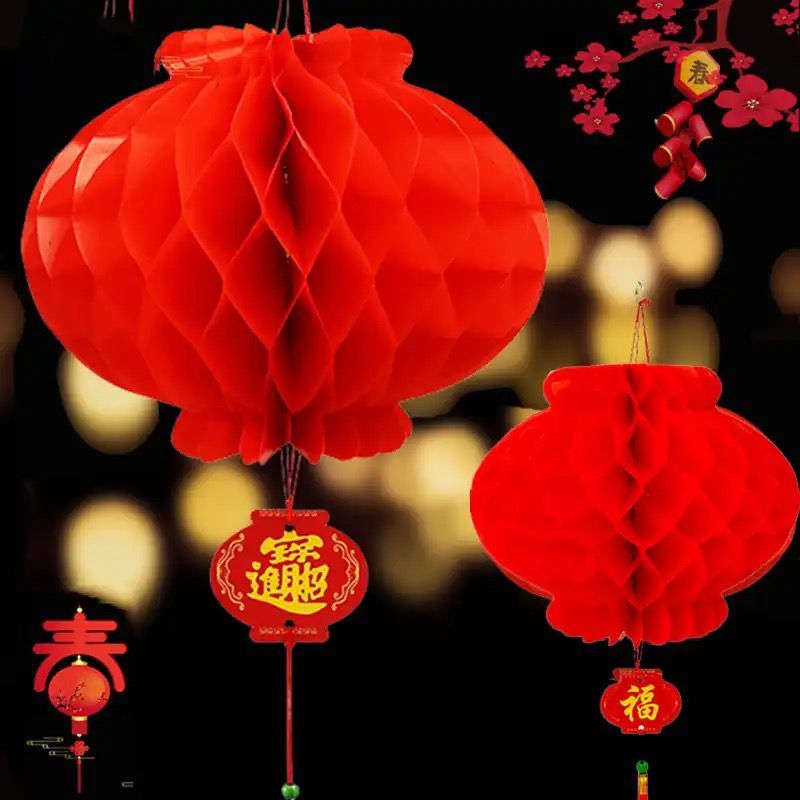 HARGA 2PCS (SEPASANG) - IMLEK 2026 LAMPION BULAT HONEYCOMB TAWON - PLASTIK MERAH DEKORASI HIASAN IMLEK TAHUN BARU CINA IMLEK 2026 TERMURAH KUALITAS TINGGI