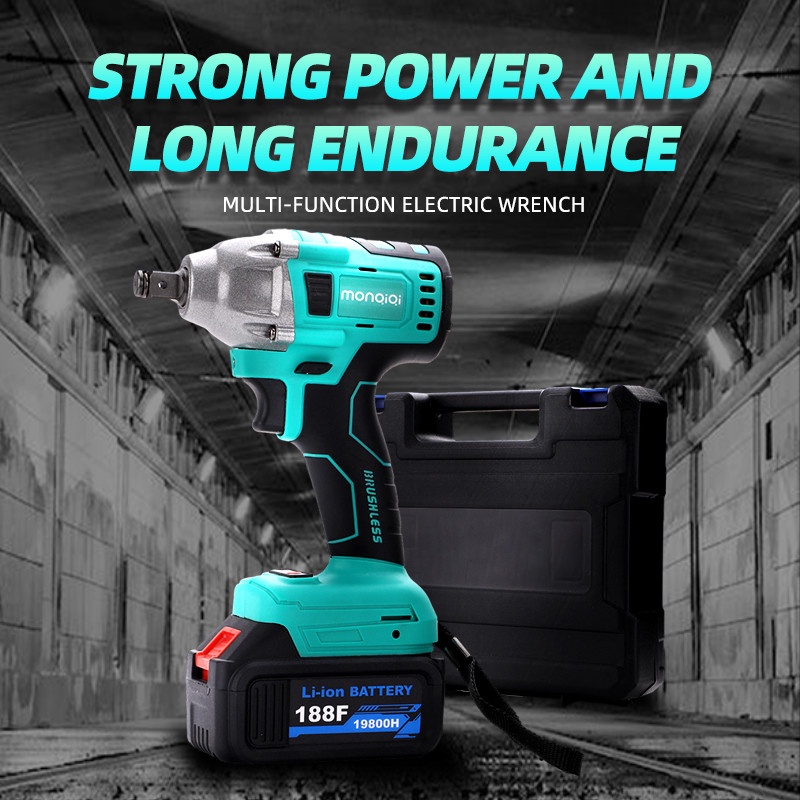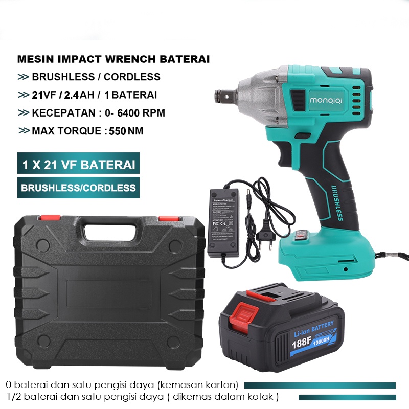 Impact Wrench Cordless Torsi Besar Mesin Bor Baterai Cordless Electric Wrench Rechargeable Pembuka Baut Baterai Electric Impact Wrench Spanner Sets 550N.M 188VF Impact Wrench 21V/98V