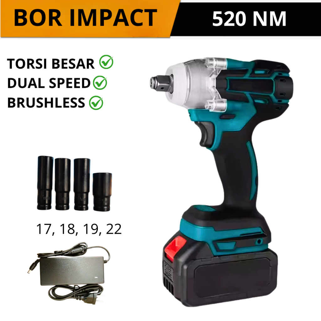 Impact wrench 520nm kunci roda VODA kunci shok pembuka baut roda 21 volt kunci ban mobil roda motor
