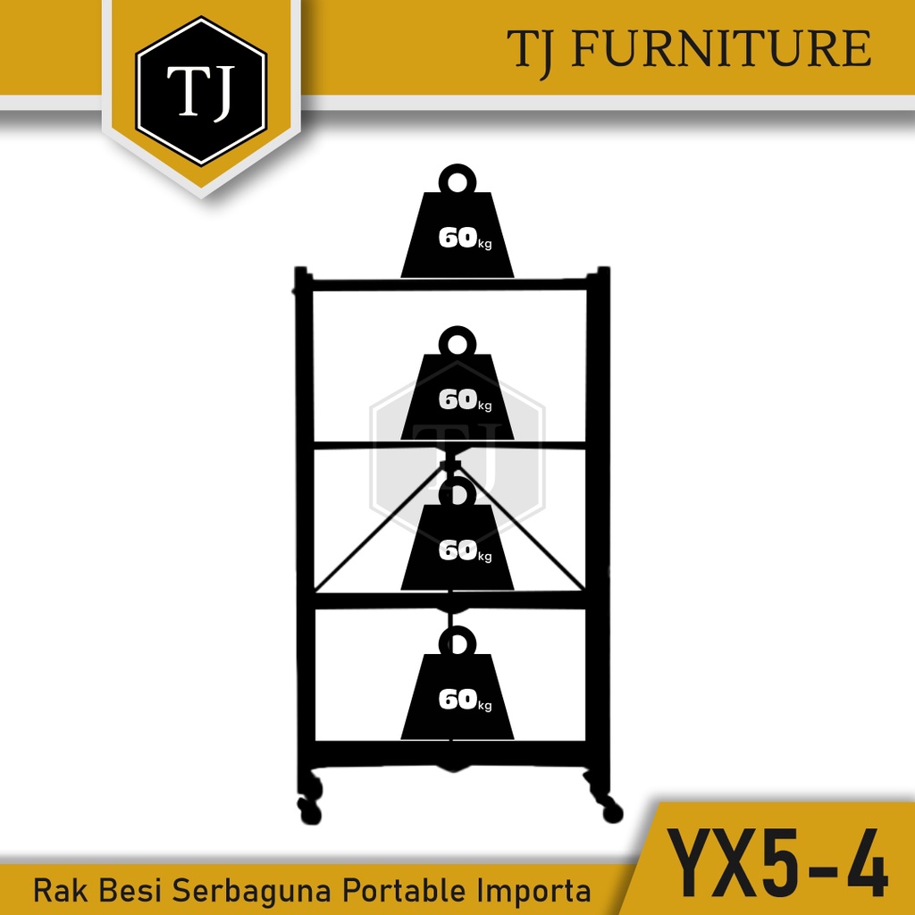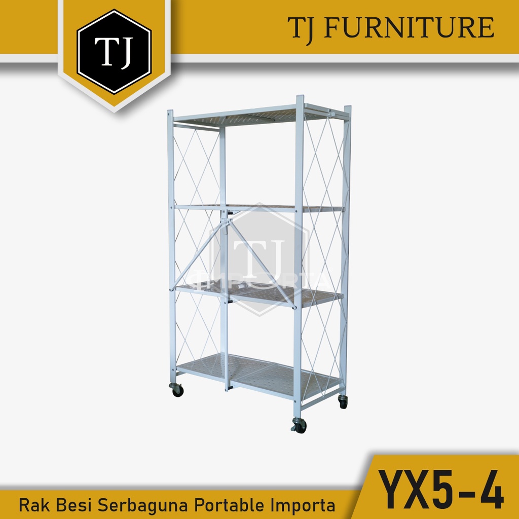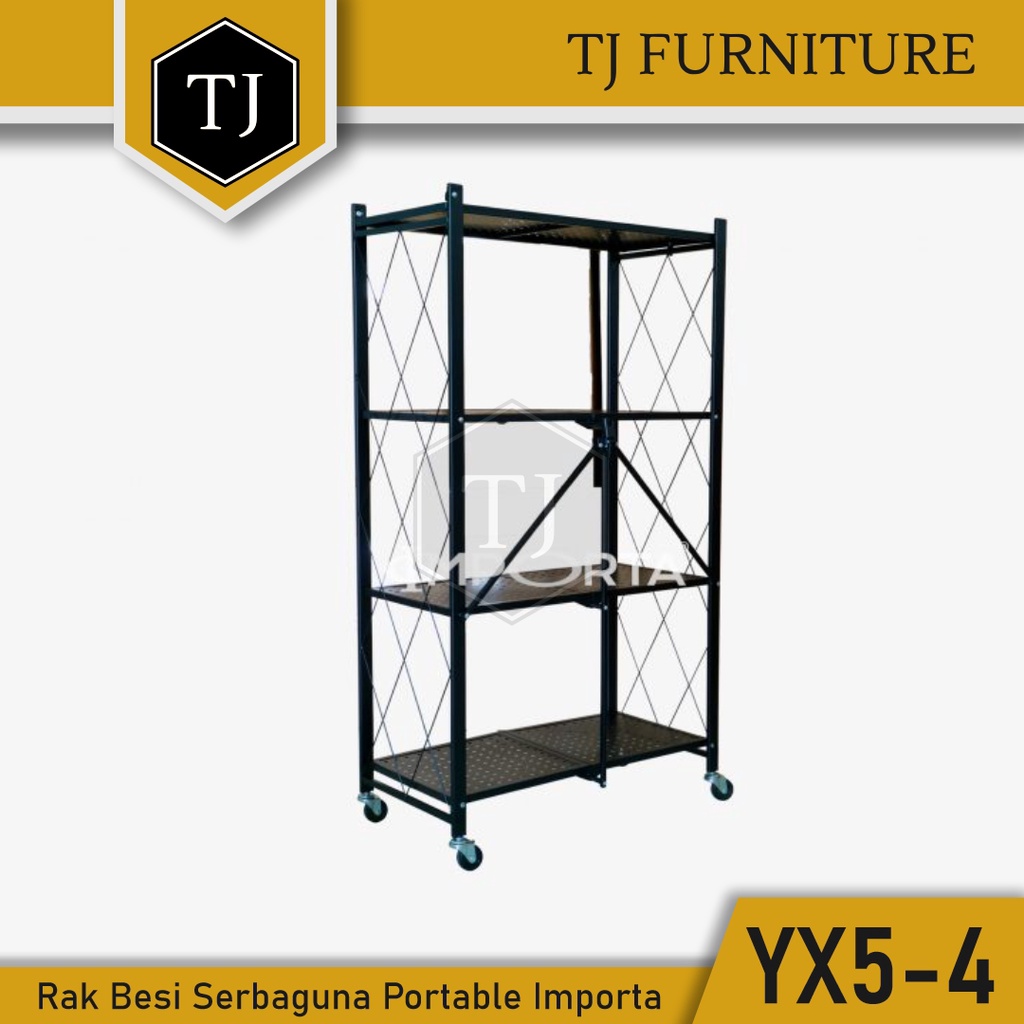 Importa Rak Lipat Portable Besi / Rak Buku / Rak Display / Rak Pajangan / Rak Ruang Tamu / Rak Serbaguna 4 Susun YX5-4