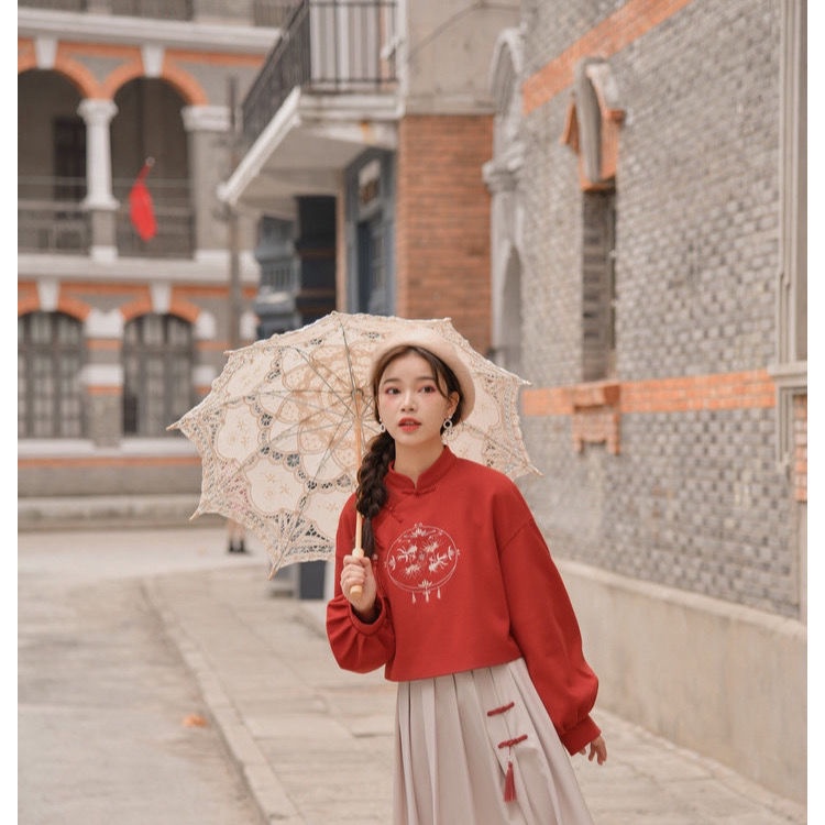 Improved Hanfu female Han element Chinese national style long sleeve campus class uniform students'