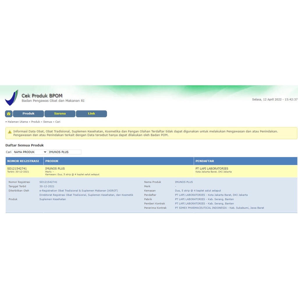 Imunos Plus Tablet Suplemen Kesehatan Daya Tahan Tubuh