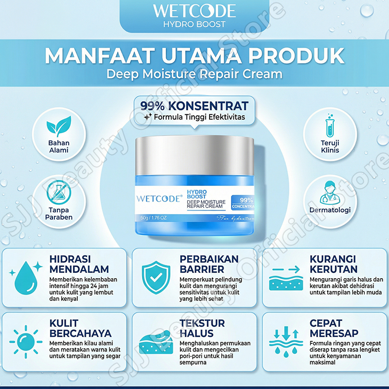 Moisturizer hydrating Cream pencerah wajah 50g Cream pelembab wajah Krim pemutih wajah Repair skin barrier Melembabkan intensif Brightening Kontrol minyak Menenangkan kulit Untuk kulit kering Non-Alkohol